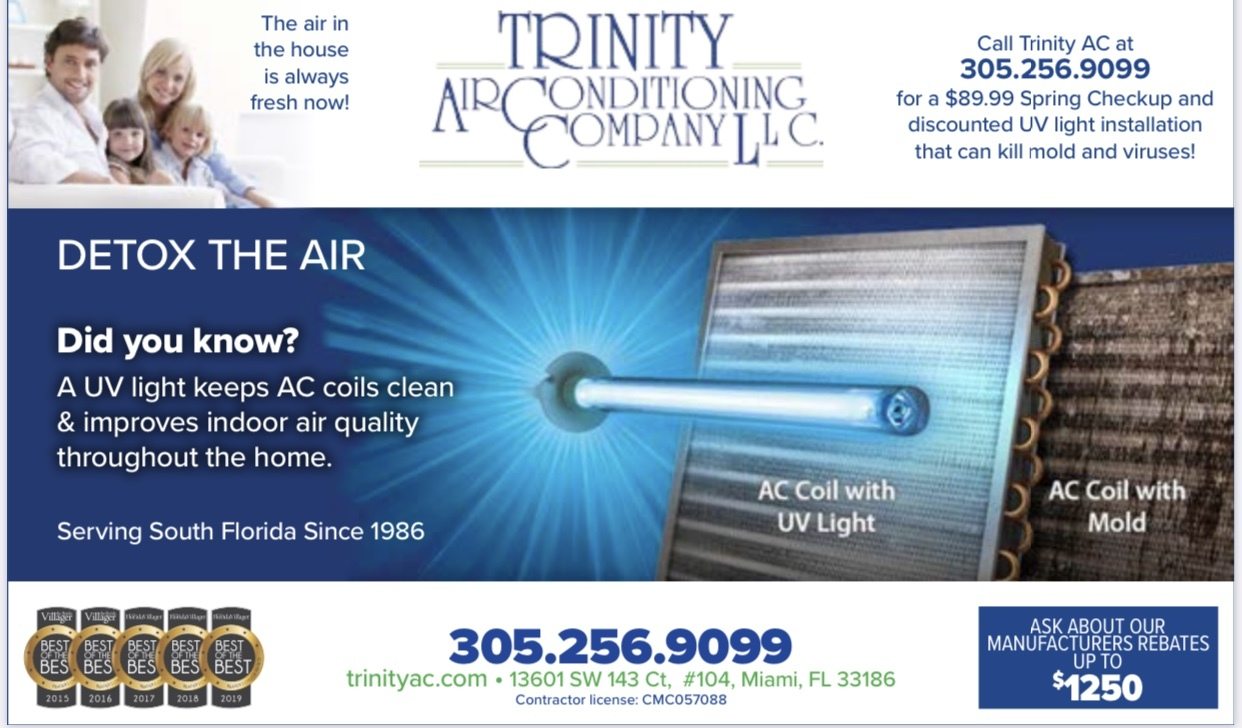 No matter the challenge, Trinity Air Conditioning Company delivers sustainable and satisfying results. Partnering with industry-leading manufacturers such as Carrier and Mitsubishi, our highly trained and experienced technicians are backed by extensive resources, ensuring prompt arrival, quick turnaround, and exceptional rewards. We work on all makes and models of HVAC equipment and remain on call 24/7, providing Emergency Service across Northern Keys, Ocean Reef, Miami Beach, South Dade, Homestead, Miami Three Lakes, The Crossings, Palmetto Bay, Cutler Bay, Pinecrest, Kendall, South Miami, Coral Gables & Coconut Grove, FL and surrounding areas. Trinity Air Conditioning Company serves your best interests through unwavering professionalism and superior job performance.